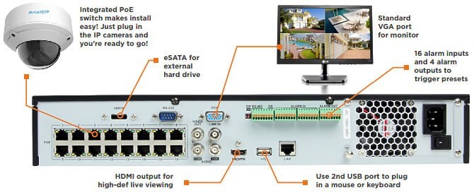 دستگاه ان وی آر 16 کاناله می تواند دارای پورت شبکه 10/100/ 1000 نیز باشد.