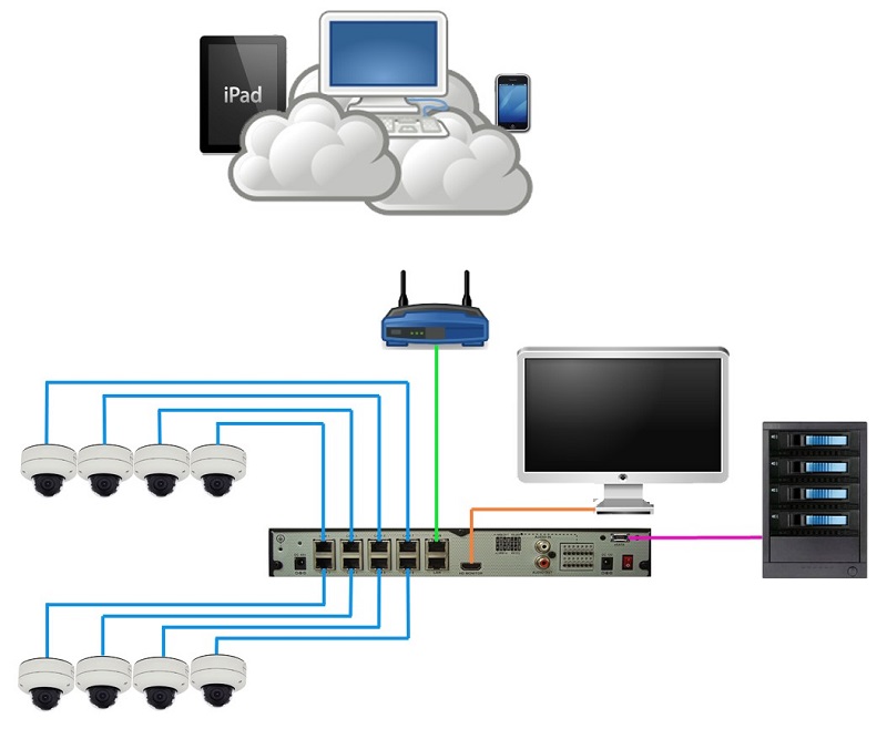 سیستم دوربین مدار بسته تحت شبکه شامل دستگاه ان وی آر و دوربین های مدار بسته، سوئیچ شبکه و کابل شبکه می باشد، این نکته را توجه نمایید که دوربین های شبکه را در صورتی می توانید در یک سیستم نصب نمایید که دستگاه ان وی آر و دوربین ها از استاندارد onvif پشتیبانی کنند، در غیر این صورت باید دوربین و دستگاه ها همگی از یک برند معتبر باشند.